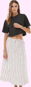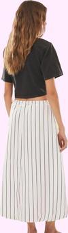 Dokuma kumaşın sağladığı rahatlık ve nefes alabilirlik, yaz sıcağında ferah hissetmenizi sağlar. Balon silüetinin şıklığı, ince detaylarla tamamlanır. Çizgili desen ise, zamansız bir şıklık sunar. Eteğin maxi boyu, çeşitli vücut tiplerine uyum sağlar. Günlük kullanım için idealdir ve farklı üstlerle kolayca kombinlenebilir. Bu etekle kendinizi özgür ve rahat hissedeceksiniz.