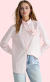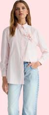 Dokuma kumaşın kalitesi ve dayanıklılığı, uzun süreli kullanım imkanı sunar. Pembe rengi ve ince çizgili deseni, her mevsim kullanabileceğiniz zamansız bir parça olmasını sağlar. Göğüs kısmındaki zarif çiçek aplikasyonu, gömleğe feminen bir dokunuş katar. Günlük hayatınızda jeanler, şortlar veya eteklerle rahatlıkla kombinleyebilirsiniz. İş hayatınızda da şıklığınızdan ödün vermeden rahat etmenizi sağlar.