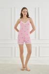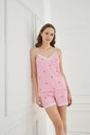 Sevimli ve zarif detayların bir araya geldiği bu kadın çizgili kalp desenli şort takım, evde konforlu ve şık görünmek isteyenler için tasarlandı.