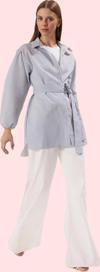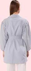 Ersefa Kadın Çizgili Kuşaklı Gömlek Uzun Kollu Yazlık Rahat Günlük Hafta Sonu Yaz Aylarının Vazgeçilmezi