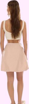Gofre kumaşın özel dokusu, eteğe hem şık bir görünüm hem de nefes alabilir bir özellik kazandırıyor. Belden bağlama detayı sayesinde, vücut tipinize ve tarzınıza uygun bir uyum sağlayabilirsiniz. Kısa boyu, özellikle yaz aylarında sıcak havalarda rahat bir kullanım sunar. Çizgili deseni ile de kombinlerinizde canlı bir hava yaratmanızı sağlar.