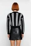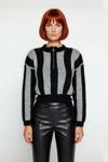 Ürün Özellikleri: Oversize kalıp, %69 Akrilik %31 Polyester materyal, çizgili desen, fermuarlı dik yaka, düşük kol, triko kumaş, siyah gri renk, baskısız tasarım, crop boy.