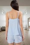 Yaz aylarının sıcak gecelerinde kendinizi serin ve rahat hissetmenizi sağlayacak, şık ve modern bir pijama takımıyla tanışın! %100 viskoz kumaştan üretilen bu nefes alabilen pijama takımı, ince askılı atlet üstü ve boru paça şorttan oluşuyor. Çizgili deseni ve zarif çiçek nakış detaylarıyla göz alıcı bir görünüme sahip olan bu takım, evde geçireceğiniz vakitleri daha keyifli hale getirecek. Rahat ve bol kesimiyle gün boyu konfor sunan bu pijama takımı, yazlık bir şıklığın simgesi. Yumuşak dokusuyla cildinize nazikçe dokunurken, nefes alabilen yapısıyla da sizi ferahlatacak. Tasarımıyla da oldukça modern ve şık olan bu takım, evde dinlenmek için ideal. Makinede yıkanabilir özelliğiyle pratikliği ön plana çıkarır. Evde, lounge alanında, tatilde ya da her yerde rahatlıkla kullanabileceğiniz bu güzel takım, benzersiz bir deneyim sunar.