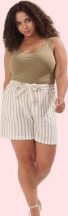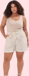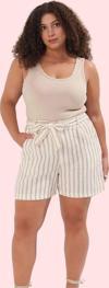 Günlük stilinize şıklık ve rahatlık katacak bu muhteşem bej çizgili şort, yaz aylarının en gözde parçalarından biri olacak! Yüksek bel tasarımı ve geniş paçası ile vücudunuzu mükemmel bir şekilde sararken, %100 pamuk kumaşıyla gün boyu konfor sunuyor. Keten görünümlü dokusuyla şık ve modern bir görünüm sergilerken, rahatlığıyla da sizi etkileyecek.