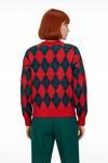Ürün Özellikleri: Oversize kalıp, akrilik polyester metalize iplik, baklava desen, bisiklet yaka, düşük kol, triko kumaş, kırmızı yeşil simli.