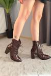 - Kadın Cora Yandan Fermuarlı Bağcık Detaylı Kalın Topuklu Sivri Burunlu Bot