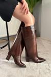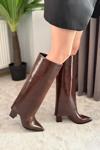 Jeoli Kahverengi Cilt Topuklu Çizme - Image 1