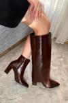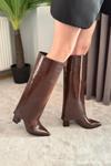 Butik Disan Kahverengi Cilt Topuklu Çizme