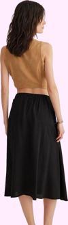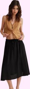 Rahatlığı ve şıklığı bir arada arayan kadınlar için özel olarak tasarlanan bu siyah etek, yaz aylarında stilinizi tamamlayacak mükemmel bir seçenek. Hafif ve nefes alan crinkle dokuma kumaştan üretilen etek, gün boyu konforlu bir kullanım sunar. Esnek bel bandı sayesinde, vücudunuza mükemmel uyum sağlar ve hareket özgürlüğünüzü kısıtlamaz. Kloş kesimi ile her vücut tipine uyum gösterirken, midi boy uzunluğu da şık ve zarif bir görünüm yaratır.