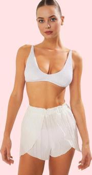 Crinkle dokuma kumaşın hafif ve nefes alabilir yapısı, yaz sıcağında bile serin ve rahat kalmanıza yardımcı olur. Yüksek bel tasarımı, vücudunuzu sararak kusursuz bir silüet oluşturur. Kısa boyu ile hareket özgürlüğünüzü kısıtlamazken, şık ve modern görünümünüzü tamamlar. Dar paçası ile bacak boyunuzu daha uzun gösterebilir. Düz beyaz rengi sayesinde her türlü kombin için ideal bir seçenektir. Hem günlük hayatta hem de plaj veya havuz kenarında şık ve rahat hissetmenizi sağlar.