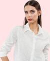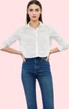 Günlük hayatınızda rahatlık ve şıklığı bir arada arayanlar için tasarlanan bu kadın gömleği, %100 pamuk dokuma kumaştan üretilmiştir. Yumuşak ve nefes alan yapısıyla yaz aylarında bile serin kalmanızı sağlar. Crop boyu ve basic siluetiyle her vücut tipine uyum sağlayan gömlek, gömlek yaka detayı ve uzun standart kollarıyla klasik bir şıklık sunar. Ekru rengi ve ince brode işlemeleri ile göz alıcı bir görünüme sahiptir. Cepsiz tasarımıyla sade ve şık bir tarz oluşturur. Kolayca makinede yıkanabilir özelliğiyle pratik kullanım sağlar. Bu gömlek, jean pantolon, etek veya şortlarla kombinlenerek farklı stiller yaratmanıza olanak tanır.