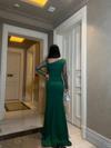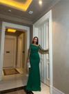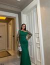 Kadın Dalgıç Krep Kumaş Kolları Tül Ve Taş Detaylı önü Drapeli Maxi Boy Elbise