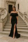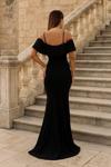 Kadın Dalgıç Krep Yırtmaç Detaylı Askılı Maxi Boy Elbise