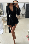 Bysevensail Pudra Kollu Mini Toparlayıcı Etkili Drapeli Abiye Elbise Düğün Mezuniyet Özel Gün Kıyafeti