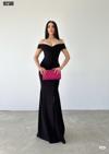 Kayık Yaka ve Dekolte Detayı: Göz alıcı kayık yaka detayıyla başlayan elbise, dekolte kısmındaki zarif detaylarla tamamlanır, feminen bir görünüm sunar.