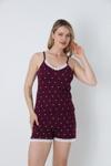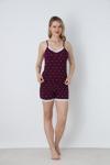 Rahatlığın ve şıklığın buluştuğu bu kadın dantel detaylı puantiyeli şort takım, ev giyiminde zarif bir görünüm arayanlar için ideal.