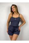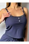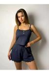 Şıklığından ödün vermeden konfor arayan kadınlar için tasarlanan Kadın Dantel Detaylı Safir Mavi Kolsuz Askılı Mini Yazlık Pijama Takımı, yumuşak dokusu ve zarif tasarımıyla göz kamaştırıyor.