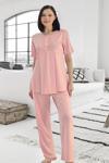 Kadın Hamile Lohusa Pijama Takımı Beli Ayarlanabilir Lastikli , Emzirme kolaylığı sağlayan düğmeleri mevcuttur.