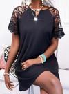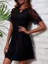 Kadın Dantelli Kısa Kollu Damla Yaka Krep Elbise