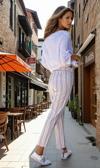 - Düz deseni ve boru paça tasarımı ile sade ve şık bir görünüm kazandırır