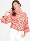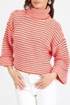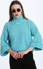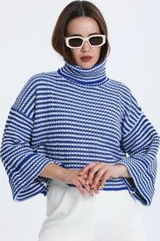 Kadın Degaje Yaka Çizgili Triko Bluz 014
