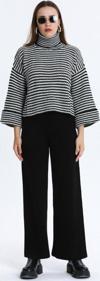 Kadın Degaje Yaka Çizgili Triko Bluz 014