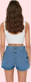 PayBuy Kadın Denim City Short Cep Detaylı Yüksek Bel Mini Şort Pamuklu Yazlık Yaz Aylarının Vazgeçilmezi