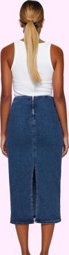 Bu şık ve zarif midi boy kalem etek, günlük stilinizi tamamlamanız için mükemmel bir seçenek. %98 pamuk ve %2 elastan karışımı denim kumaşından üretilen etek, yüksek konfor ve şık bir görünüm sunuyor. Kalem kesim tasarımı vücudunuza mükemmel otururken, kemer detayı belinizi ince göstererek feminen bir siluet yaratıyor. Cepsiz tasarımıyla minimalist bir görünüm sunan etek, rahat ve şık bir tarz oluşturmanıza yardımcı olacak. Günlük kombinlerinizde, tişörtler, bluzlar veya gömleklerle rahatlıkla kullanabilirsiniz. Makinede yıkanabilir özelliği ile pratik ve kolay temizlenebilir. Midi boyu ve düz deseni ile her mevsim şık ve modern görünmenizi sağlayacak bu etek, gardırobunuzun vazgeçilmez parçalarından biri olacak.