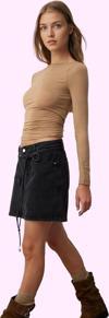 Bu yüksek bel midi boy denim etek, 36'dan 44'e kadar beden seçenekleriyle sunulmaktadır. Kumaşın doğal yapısı sayesinde nefes alabilir ve yumuşaktır. Rigid dokuma özelliği sayesinde eteğinizin formunu uzun süre koruyabilirsiniz. Casual bir gün geçirmek için ideal olan bu etek, rahatlığın ve şıklığın mükemmel birleşimi.