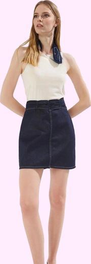 PayBuy Kadın Denim Mini Etek Büzgülü Yüksek Bel A line Pamuk Günlük Hafta Sonu Yaz Aylarının Vazgeçilmezi