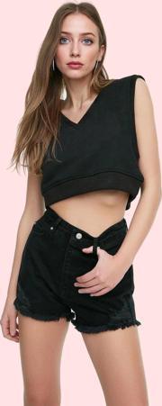 Bu sezonun en trend parçası olan siyah denim şortumuzla tanışın! Yüksek belli ve mini boy yapısıyla dikkat çeken şort, rahatlığı ve şıklığı bir arada sunuyor. %100 pamuktan üretilen kumaş, gün boyu konfor sağlar. Yırtık detaylar, şorta modern ve edgy bir hava katarken, düz desen ve straight kalıbıyla her vücut tipine mükemmel uyum sağlar.