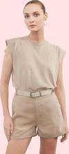 Günlük yaşamınızda şıklığı ve konforu bir arada arayan kadınlar için özel olarak tasarlanan bej denim şortumuzla tanışın! Yüksek bel tasarımı ve rahat kesimi ile gün boyu rahatlık sağlayan bu şort, City Short kalıbıyla vücudunuza mükemmel bir uyum sunar. %100 Liyosel kumaştan üretilen şort, nefes alabilir yapısıyla yaz aylarında serin kalmanıza yardımcı olur. Nervürlü detayı ise şorta modern ve şık bir görünüm kazandırır. Düz tasarımı sayesinde her tarza uyum sağlayan bu şort, farklı üstlerle ve aksesuarlarla kombinlenerek her ortamda şık ve rahat görünmenizi sağlar.