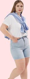 Bu sezonun en trend parçası olan mavi denim şortumuz ile tanışın! Yüksek bel tasarımı, ince vücut hatlarınızı ön plana çıkarırken, kısa boyu ve dar paçası ile modern ve şık bir görünüm sunar. Nefes alabilir yapısıyla yaz sıcağında bile rahatlık hissedeceksiniz. Günlük kombinleriniz için ideal bir seçenek olan bu şort, tişörtler, bluzlar ve spor ayakkabılarla harika bir uyum sağlar. Hem rahatlığı hem de şıklığı bir arada arayan kadınlar için mükemmel bir tercih.