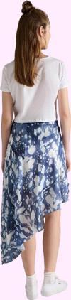 Renk:Mavi; Desen:Soyut; Kumaş Tipi:Dokuma; Astar Durumu:Astarlı; Boy:Midi; Siluet:Asimetrik; Dokuma Tipi:Saten; Materyal Bileşeni:100% Polyester; Yıkama Talimatı:T10; Sezon:Yaz; Menşei:TR