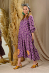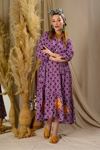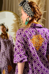 Canlı mor rengi ve etnik desenleriyle enerjik ve dikkat çekici bir tarz sunar.