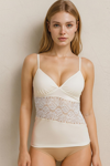 Özkan Underwear Kadın Desenli Tül Detay Modal Askılı Atlet | Ekru 25613