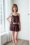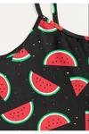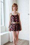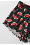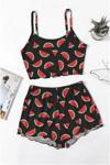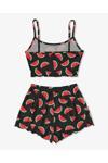 Kadın Desenli Yazlık Şortlu Askılı Kolsuz Siyah Mini Crop Pijama Takımı