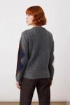 Ürün Özellikleri: Oversize kalıp, akrilik/polyester materyal, baklava desen, dik yaka, düşük kol, triko kumaş, gri renk.