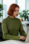 Kadın Triko Kazak Kolu Çizgili Yeşil - Image 1