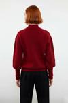Ürün Özellikleri: Oversize kalıp, 79% Akrilik 21% Polyester materyal, zigzag desen, dik yaka, balon kol, triko kumaş, bordo renk, baskısız tasarım.