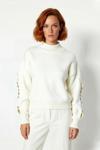 Ersefa Kadın Dik Yaka Triko Kazak Düşük Kollu Düğme Detaylı Modern Regular Kalıp Kış İçin İdeal Seçim