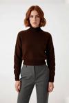 Ersefa Kadın Dik Yaka Triko Kazak Düşük Kollu Düğme Detaylı Modern Regular Kalıp Kış İçin İdeal Seçim