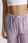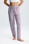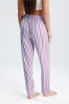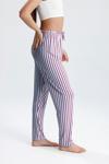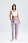 Kadın dikey çizgili uzun pijama pantolonu, modern ve şık tasarımıyla ev giyiminize dinamik bir dokunuş katar.