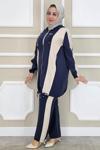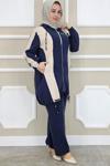 Ka Hijab Işıltı Detay Etekli Merserize Takım - Lacivert