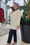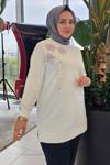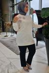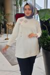 Zarafeti sade detaylarla buluşturan bu tunik, çiçek işlemeleriyle sezonun en göz alıcı trendlerinden birini yansıtıyor. Yumuşacık dokusu ve rahat kesimiyle gün boyu konfor sunarken, inci ve dantel detaylarıyla görünümüne romantik bir dokunuş katıyor. Nötr tonlarıyla hem günlük hem şehir stiline kolayca uyum sağlayan bu model, gardırobuna modern bir tazelik kazandırmak isteyen kadınlar için tasarlandı.