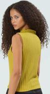 Doğal ve yumuşak örme kumaş, gün boyu rahatlık sunar. Dokulu yapısı, bluza modern ve şık bir görünüm kazandırır. Kolay bakım gerektiren kumaşı sayesinde, zahmetsizce temizleyebilirsiniz. Esnek yapısı vücudunuza mükemmel uyum sağlar. Kolsuz tasarımı sıcak havalarda serin kalmanızı sağlar. Regular kalıbı ile vücut hatlarınızı dengeli bir şekilde ortaya koyar. Dik yakası bluza şık ve zarif bir hava katar.