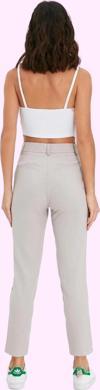 Şıklığı ve rahatlığı bir araya getiren gri dokumanın zarif dokusuyla tasarlanan bu kadın pantolonu, günlük yaşamınızda tarzınızı yansıtmanıza yardımcı olacak. Normal bel yüksekliği ve cigarette kalıbıyla vücut hatlarınızı mükemmel bir şekilde sarar ve kusursuz bir görünüm sağlar. Boru paça tasarımı, modern ve şık bir stil oluştururken, çift cep detayı da hem şıklık hem de fonksiyonelliği bir arada sunuyor. %88 Polyester ve %12 Elastan karışımından üretilen kumaş, nefes alabilir yapısıyla gün boyu konforlu bir kullanım sağlar. Finike dokuma tekniği ile üretilen pantolon, dayanıklı ve uzun ömürlüdür. Tüm mevsimlerde rahatlıkla kullanabileceğiniz bu pantolon, çeşitli kombinler oluşturmak için idealdir. İş hayatınızda şık bir görünüm elde etmek, hafta sonu rahatlığını yaşamak ya da arkadaşlarınızla buluşurken stilinizi konuşturmak için mükemmel bir seçenek.