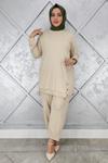 Zarif detaylarıyla öne çıkan bu takım, sade şıklığı seven kadınlar için tasarlandı. Yumuşak dokusu ve rahat kalıbı sayesinde gün boyu konfor sunarken, zarif formu ile her ortamda şık bir duruş sağlar.