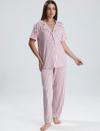 Zamansız çizgi deseniyle dikkat çeken bu mor-beyaz çizgili kadın pijama takımı, hem rahatlığı hem de şıklığı bir arada sunuyor. Önden tam düğmeli kısa kollu üst tasarımı ve esnek beliyle konforlu alt pijama, evde geçirdiğiniz her ana modern bir stil katıyor. Hafif ve yumuşak dokusu ile dört mevsim kullanım için ideal bir seçimdir.