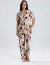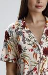 Rahatlığın ve şıklığın buluştuğu bu şal desenli önden düğmeli kadın pijama takımı ile ev stilinize zarif bir dokunuş katın. Yumuşak ve nefes alabilen kumaşı sayesinde tüm gün konfor sunarken, zarif çiçek ve şal desenleriyle modaya uygun bir görünüm sağlar. Önden tam düğmeli tasarımı, kullanım kolaylığı sunarken klasik yaka detayı ile elegan bir duruş sergiler.